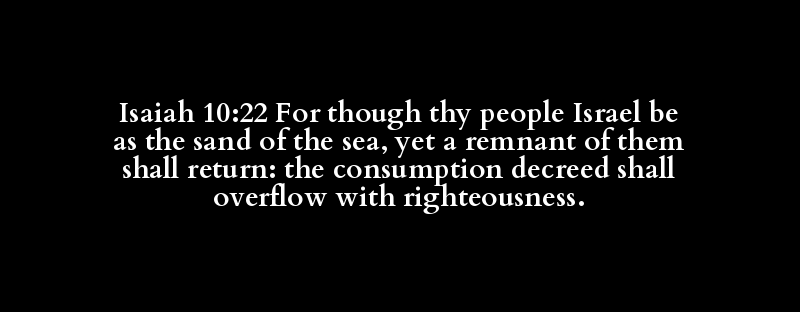 Isaiah 10:22 For though thy people Israel be as the sand of the sea, yet a remnant of them shall return: the consumption decreed shall overflow with righteousness.