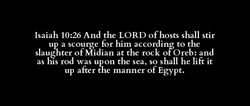 Isaiah 10:26 And the LORD of hosts shall stir up a scourge for him according to the slaughter of Midian at the rock of Oreb: and as his rod was upon the sea, so shall he lift it up after the manner of Egypt.