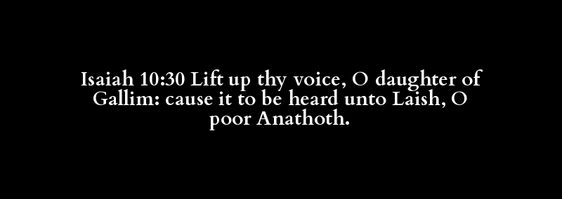 Isaiah 10:30 Lift up thy voice, O daughter of Gallim: cause it to be heard unto Laish, O poor Anathoth.