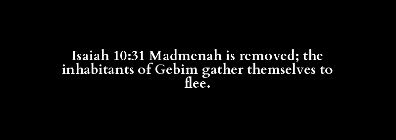 Isaiah 10:31 Madmenah is removed; the inhabitants of Gebim gather themselves to flee.