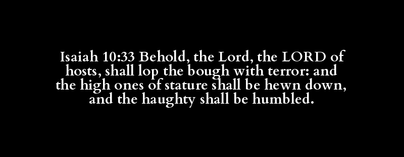 Isaiah 10:33 Behold, the Lord, the LORD of hosts, shall lop the bough with terror: and the high ones of stature shall be hewn down, and the haughty shall be humbled.