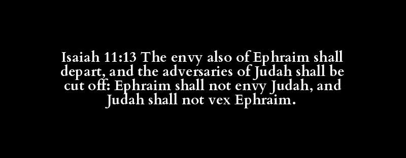 Isaiah 11:13 The envy also of Ephraim shall depart, and the adversaries of Judah shall be cut off: Ephraim shall not envy Judah, and Judah shall not vex Ephraim.