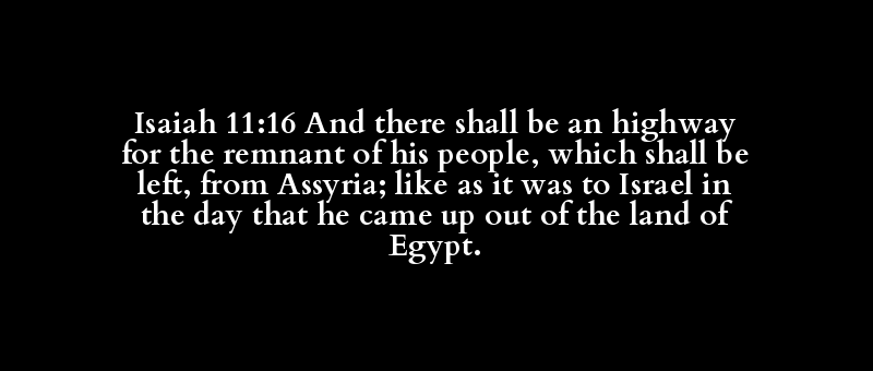 Isaiah 11:16 And there shall be an highway for the remnant of his people, which shall be left, from Assyria; like as it was to Israel in the day that he came up out of the land of Egypt.