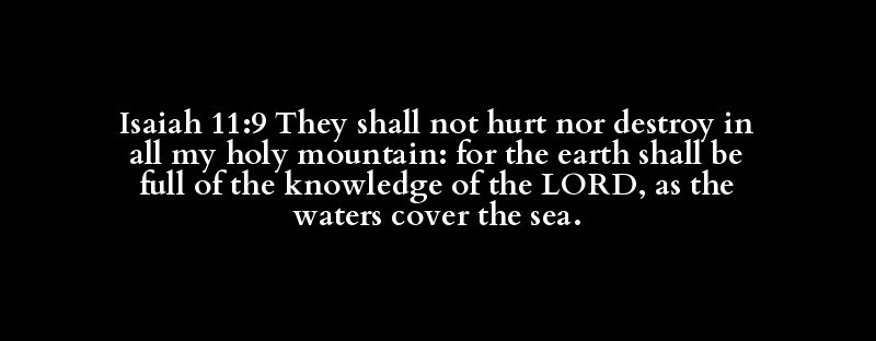 Isaiah 11:9 They shall not hurt nor destroy in all my holy mountain: for the earth shall be full of the knowledge of the LORD, as the waters cover the sea.
