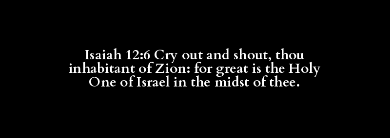 Isaiah 12:6 Cry out and shout, thou inhabitant of Zion: for great is the Holy One of Israel in the midst of thee.