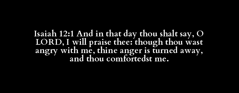 Isaiah 12:1 And in that day thou shalt say, O LORD, I will praise thee: though thou wast angry with me, thine anger is turned away, and thou comfortedst me.