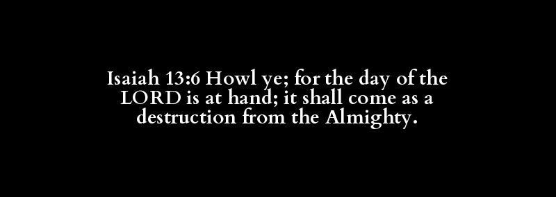 Isaiah 13:6 Howl ye; for the day of the LORD is at hand; it shall come as a destruction from the Almighty.