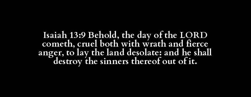 Isaiah 13:9 Behold, the day of the LORD cometh, cruel both with wrath and fierce anger, to lay the land desolate: and he shall destroy the sinners thereof out of it.