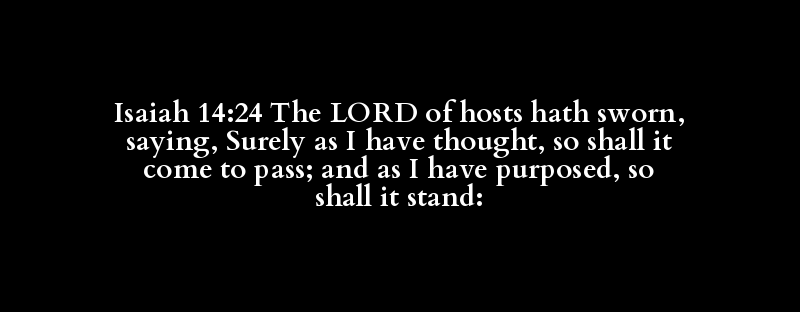 Isaiah 14:24 The LORD of hosts hath sworn, saying, Surely as I have thought, so shall it come to pass; and as I have purposed, so shall it stand: