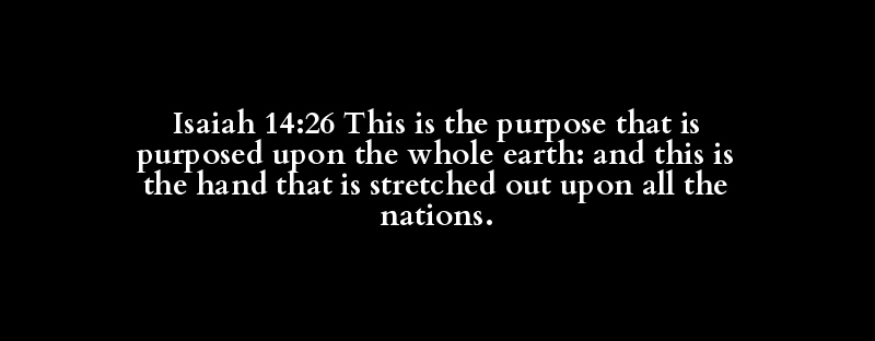 Isaiah 14:26 This is the purpose that is purposed upon the whole earth: and this is the hand that is stretched out upon all the nations.