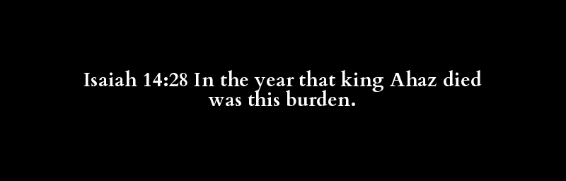 Isaiah 14:28 In the year that king Ahaz died was this burden.
