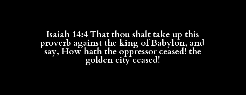 Isaiah 14:4 That thou shalt take up this proverb against the king of Babylon, and say, How hath the oppressor ceased! the golden city ceased!
