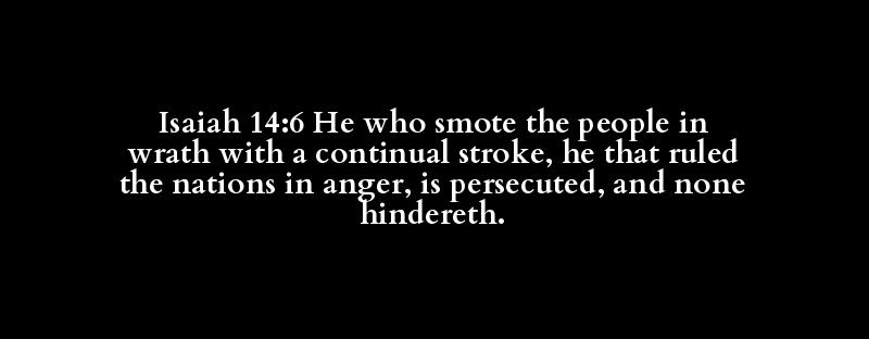 Isaiah 14:6 He who smote the people in wrath with a continual stroke, he that ruled the nations in anger, is persecuted, and none hindereth.