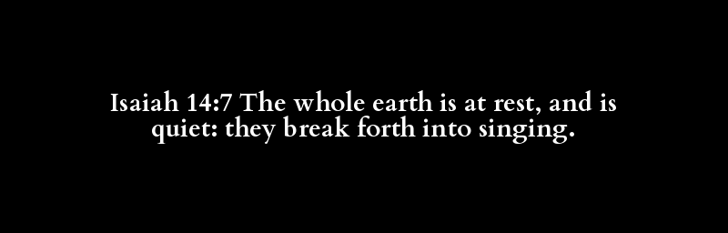 Isaiah 14:7 The whole earth is at rest, and is quiet: they break forth into singing.