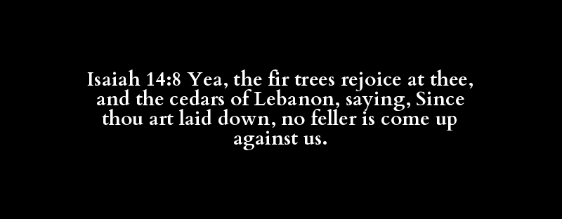 Isaiah 14:8 Yea, the fir trees rejoice at thee, and the cedars of Lebanon, saying, Since thou art laid down, no feller is come up against us.