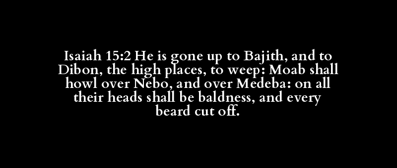 Isaiah 15:2 He is gone up to Bajith, and to Dibon, the high places, to weep: Moab shall howl over Nebo, and over Medeba: on all their heads shall be baldness, and every beard cut off.
