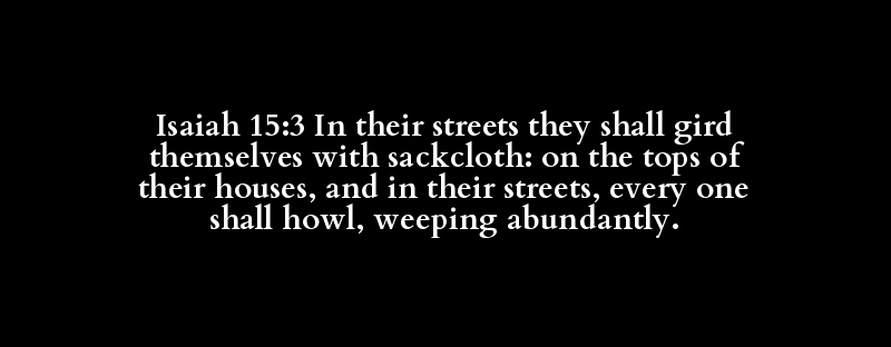 Isaiah 15:3 In their streets they shall gird themselves with sackcloth: on the tops of their houses, and in their streets, every one shall howl, weeping abundantly.