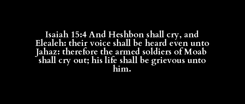 Isaiah 15:4 And Heshbon shall cry, and Elealeh: their voice shall be heard even unto Jahaz: therefore the armed soldiers of Moab shall cry out; his life shall be grievous unto him.