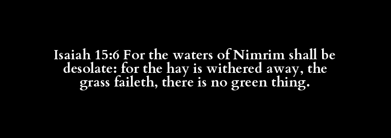 Isaiah 15:6 For the waters of Nimrim shall be desolate: for the hay is withered away, the grass faileth, there is no green thing.