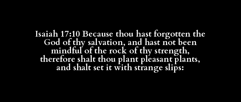 Isaiah 17:10 Because thou hast forgotten the God of thy salvation, and hast not been mindful of the rock of thy strength, therefore shalt thou plant pleasant plants, and shalt set it with strange slips: