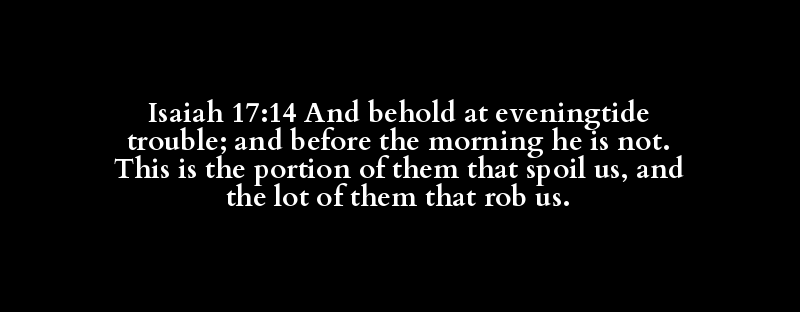 Isaiah 17:14 And behold at eveningtide trouble; and before the morning he is not. This is the portion of them that spoil us, and the lot of them that rob us.