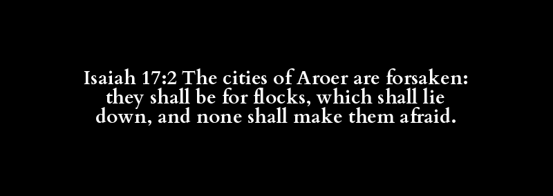Isaiah 17:2 The cities of Aroer are forsaken: they shall be for flocks, which shall lie down, and none shall make them afraid.