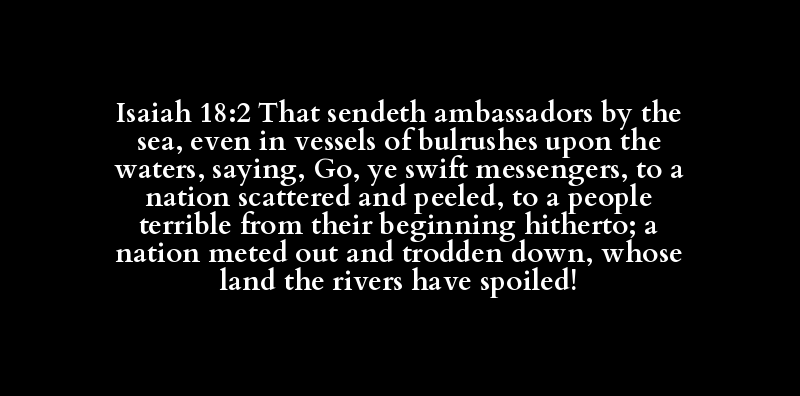 Isaiah 18:2 That sendeth ambassadors by the sea, even in vessels of bulrushes upon the waters, saying, Go, ye swift messengers, to a nation scattered and peeled, to a people terrible from their beginning hitherto; a nation meted out and trodden down, whose land the rivers have spoiled!