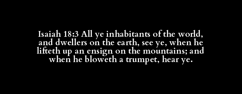 Isaiah 18:3 All ye inhabitants of the world, and dwellers on the earth, see ye, when he lifteth up an ensign on the mountains; and when he bloweth a trumpet, hear ye.