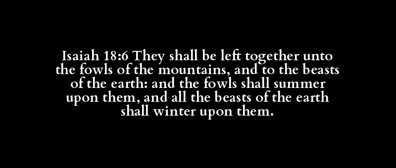 Isaiah 18:6 They shall be left together unto the fowls of the mountains, and to the beasts of the earth: and the fowls shall summer upon them, and all the beasts of the earth shall winter upon them.