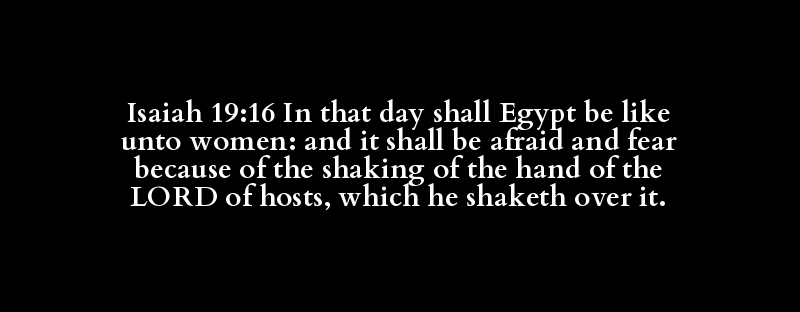 Isaiah 19:16 In that day shall Egypt be like unto women: and it shall be afraid and fear because of the shaking of the hand of the LORD of hosts, which he shaketh over it.