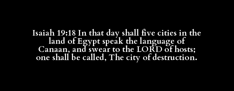Isaiah 19:18 In that day shall five cities in the land of Egypt speak the language of Canaan, and swear to the LORD of hosts; one shall be called, The city of destruction.