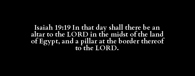 Isaiah 19:19 In that day shall there be an altar to the LORD in the midst of the land of Egypt, and a pillar at the border thereof to the LORD.