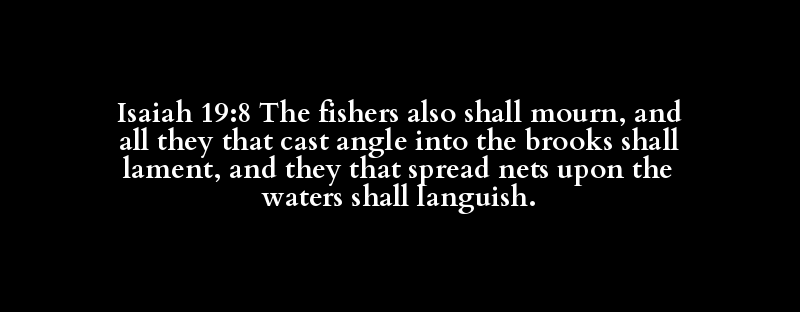 Isaiah 19:8 The fishers also shall mourn, and all they that cast angle into the brooks shall lament, and they that spread nets upon the waters shall languish.