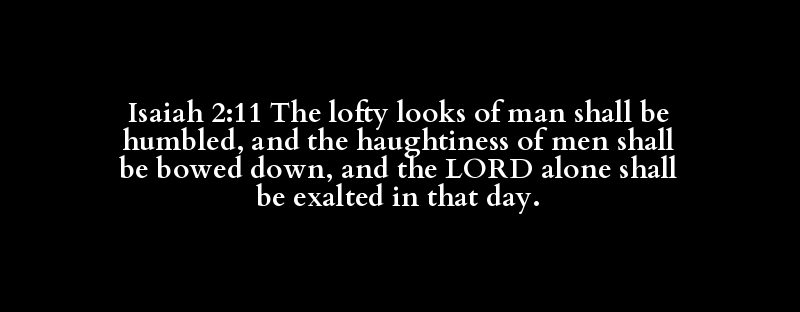 Isaiah 2:11 The lofty looks of man shall be humbled, and the haughtiness of men shall be bowed down, and the LORD alone shall be exalted in that day.