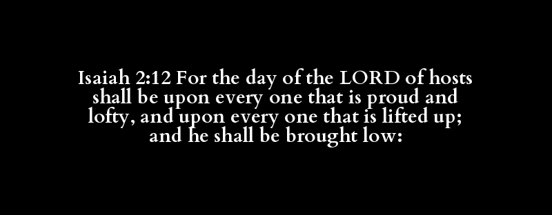 Isaiah 2:12 For the day of the LORD of hosts shall be upon every one that is proud and lofty, and upon every one that is lifted up; and he shall be brought low: