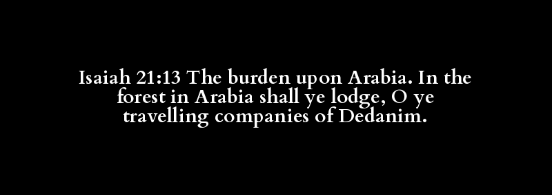 Isaiah 21:13 The burden upon Arabia. In the forest in Arabia shall ye lodge, O ye travelling companies of Dedanim.