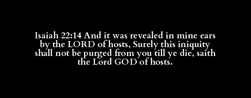 Isaiah 22:14 And it was revealed in mine ears by the LORD of hosts, Surely this iniquity shall not be purged from you till ye die, saith the Lord GOD of hosts.