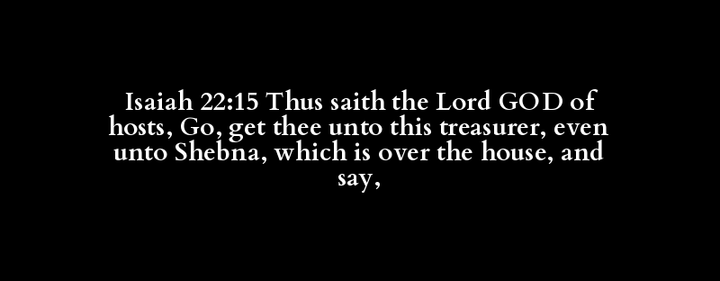 Isaiah 22:15 Thus saith the Lord GOD of hosts, Go, get thee unto this treasurer, even unto Shebna, which is over the house, and say,