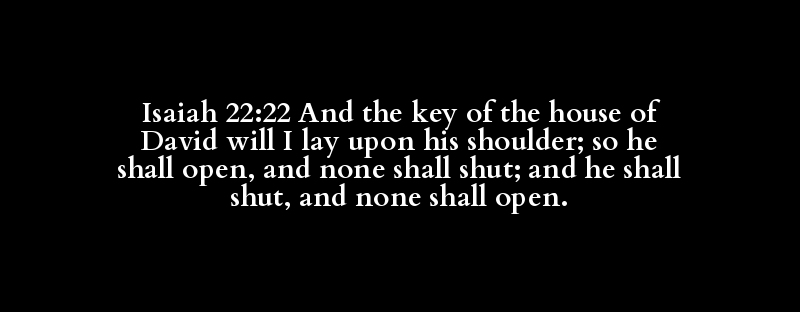 Isaiah 22:22 And the key of the house of David will I lay upon his shoulder; so he shall open, and none shall shut; and he shall shut, and none shall open.
