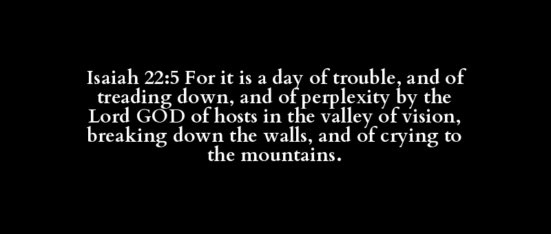 Isaiah 22:5 For it is a day of trouble, and of treading down, and of perplexity by the Lord GOD of hosts in the valley of vision, breaking down the walls, and of crying to the mountains.
