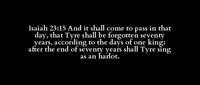 Isaiah 23:15 And it shall come to pass in that day, that Tyre shall be forgotten seventy years, according to the days of one king: after the end of seventy years shall Tyre sing as an harlot.