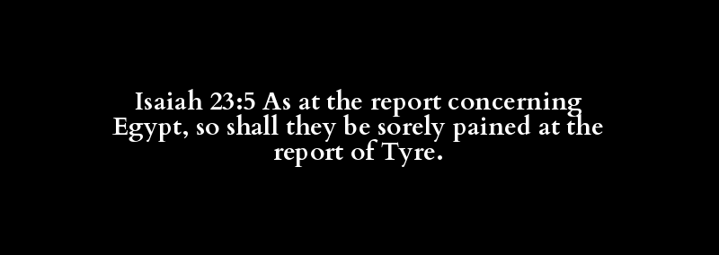 Isaiah 23:5 As at the report concerning Egypt, so shall they be sorely pained at the report of Tyre.