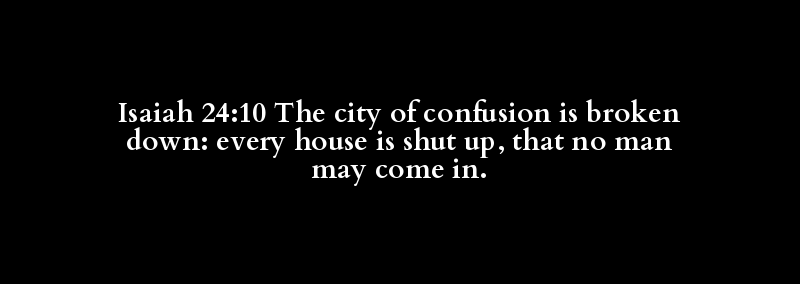 Isaiah 24:10 The city of confusion is broken down: every house is shut up, that no man may come in.