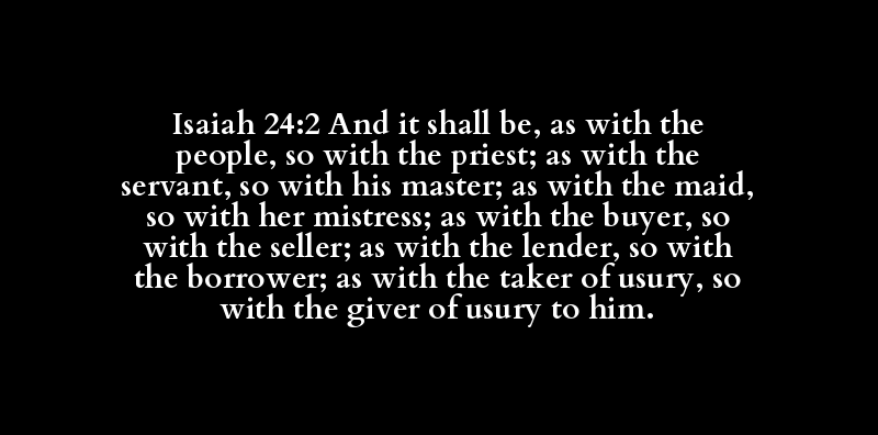 Isaiah 24:2 And it shall be, as with the people, so with the priest; as with the servant, so with his master; as with the maid, so with her mistress; as with the buyer, so with the seller; as with the lender, so with the borrower; as with the taker of usury, so with the giver of usury to him.