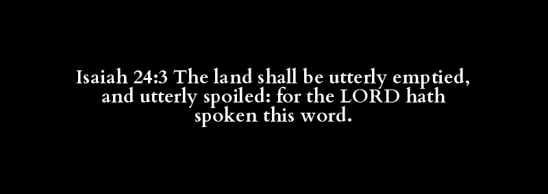 Isaiah 24:3 The land shall be utterly emptied, and utterly spoiled: for the LORD hath spoken this word.