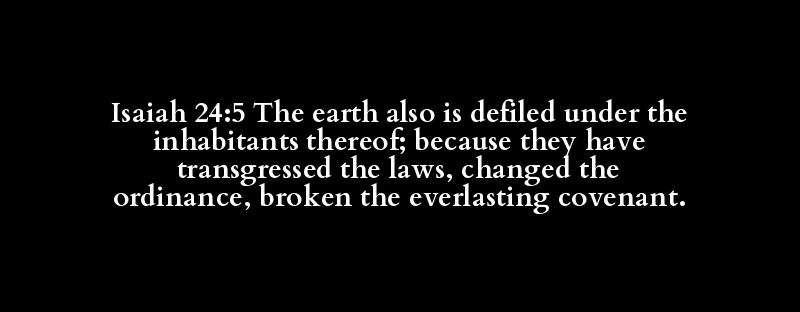 Isaiah 24:5 The earth also is defiled under the inhabitants thereof; because they have transgressed the laws, changed the ordinance, broken the everlasting covenant.