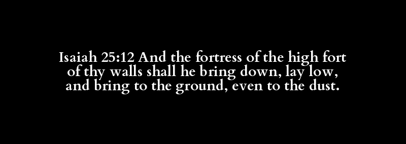 Isaiah 25:12 And the fortress of the high fort of thy walls shall he bring down, lay low, and bring to the ground, even to the dust.