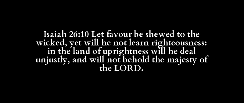 Isaiah 26:10 Let favour be shewed to the wicked, yet will he not learn righteousness: in the land of uprightness will he deal unjustly, and will not behold the majesty of the LORD.