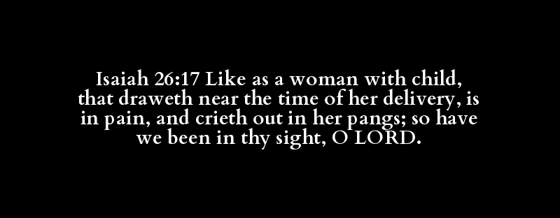 Isaiah 26:17 Like as a woman with child, that draweth near the time of her delivery, is in pain, and crieth out in her pangs; so have we been in thy sight, O LORD.