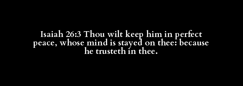 Isaiah 26:3 Thou wilt keep him in perfect peace, whose mind is stayed on thee: because he trusteth in thee.